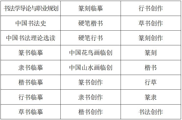 1.培养目标:书法学专业立足湖南,面向全国,旨在培养掌握书画艺术的基础知识、基本技能,具备文、史、哲等方面的修养,具有书法、篆刻、国画的创作能力和理论研究能力,能够在中小学校、文化部门、企事业单位从事书法教学与研究以及文化产业活动的应用型高级专门人才。