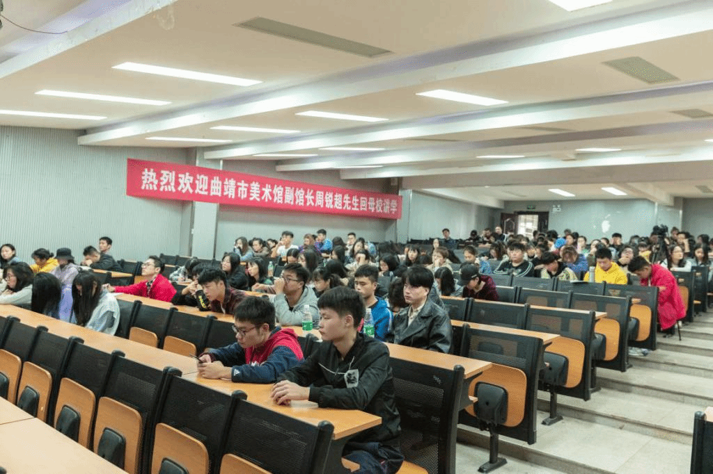 11月4日上午,云南曲靖美术馆副馆长周锐超来太阳成官网讲学。周锐超为太阳成官网优秀校友,2010年毕业于美术学专业,此次作为代表参加了母校建校40周年活动,并为学弟学妹们“量身定做”,“打造”了一场“个人作品展的策划”的讲座。