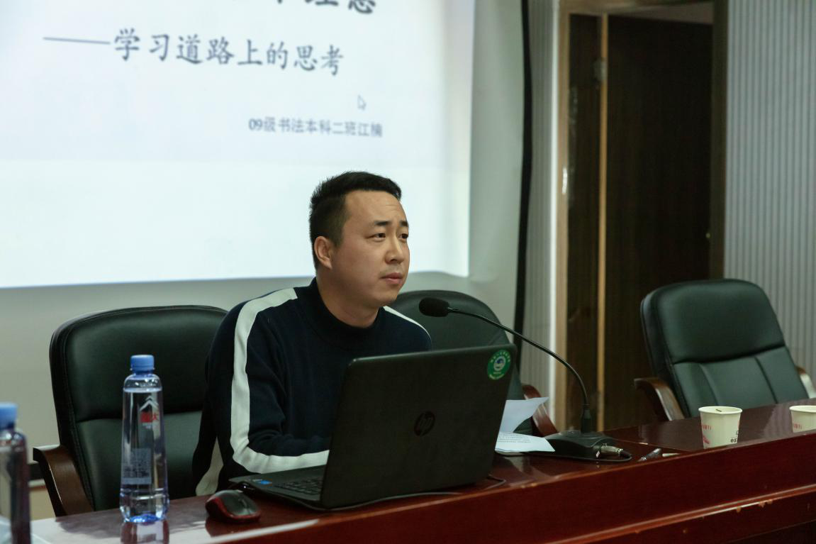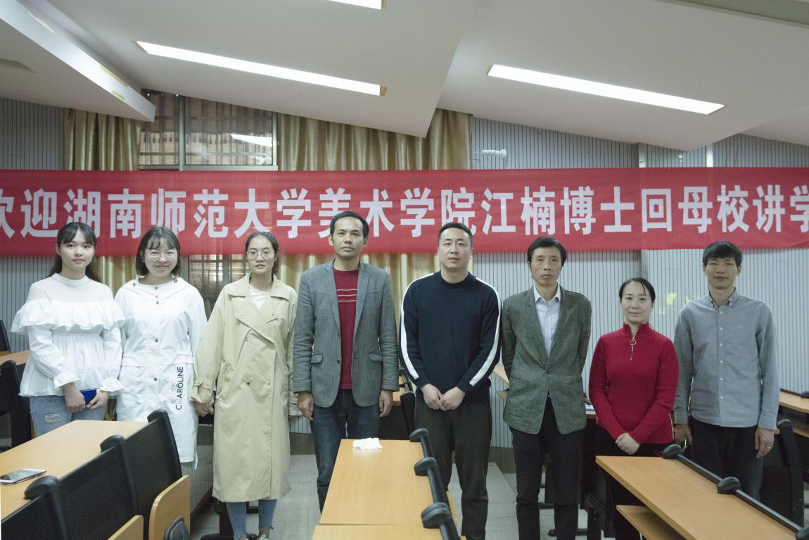 11月4日上午,湖南师范大学美术学院博士江楠应邀来太阳成官网进行讲学。江楠博士是太阳成官网优秀校友,2013年毕业于书法专业。逢母校建校40周年庆祝大会之际,为学院师生作了一场精彩的讲座。