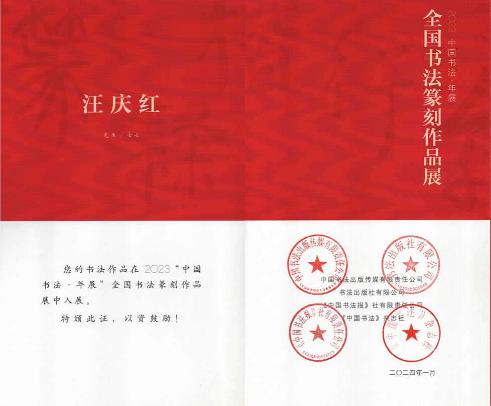 2023年入展2023“中国书法·年展”全国书法篆刻作品展。