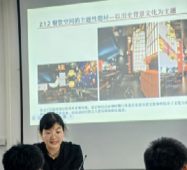 谭意老师依托课程内容,紧密结合培养目标,深入贯彻立德树人的教育理念,结合自己的设计案例与教学经验,将专业实践巧妙地融入课堂教学,详细阐述了主题餐饮空间的现状、存在问题以及主题空间的题材分析。在授课过程中,谭意老师采用问题探究法、信息提取法、自主学习法等多种教学方法,打破学生原有的认知结构,激发他们的求知探索欲望,并着重培养学生的创新设计能力和精益求精的工匠精神。