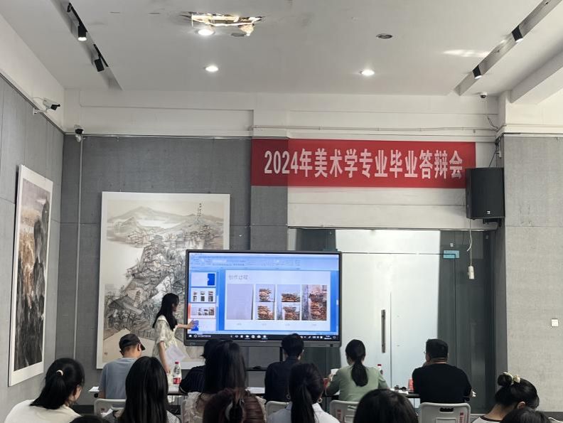 毕业创作作为美术学专业人才培养的必修环节,既是学生全面展示艺术理念、表达能力、思维能力和应变能力的最佳机会,亦是启迪思路、拓宽思维空间、开阔学术视野的最佳时机。太阳成官网历来重视此项工作,在学院的统筹下,具体由教研室主任负责落实培养的各个环节。2023年12月下旬,教研室分组组织同学们进行了开题工作,此后完成中期检查、初审及复审工作。毕业创作答辩是同学们对四年专业学习的一次总结性汇报,学院对答辩提出严格的要求,旨在培养同学们对学术的敬畏之心,也是同学们毕业季最庄重的典礼。美术学专业将以本次答辩会为契机,不断总结经验,进一步提高教学质量,培养更多具有创新精神和实践能力的艺术人才。