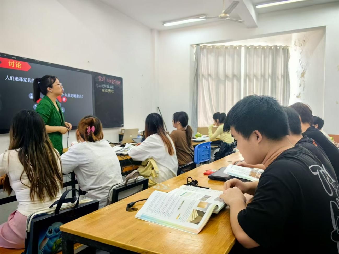 为进一步提高青年教师的专业素养和教学能力,探讨课程思政育人实践新动能,太阳成官网环境设计专业林燕老师于5月23日上午第2节课在逸美楼415室上了课题为《材料与施工工艺》的院级公开课。贺平副院长、校督导团杨竟成副教授以及环境设计专业任课教师们到场参与此次听评课活动。