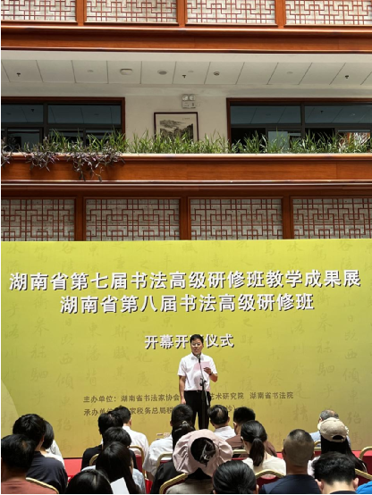 中国书法家协会副主席、省文联原主席、省书法家协会主席鄢福初,省文化和旅游厅党组成员、副厅长袁悦平,省文联党组成员、副主席、省书法家协会副主席倪文华,国家税务总局税务干部学院(长沙)党委副书记、管委会副主任张昭,省文化和旅游厅艺术处二级调研员林华军,省艺术研究院党总支书记、院长、一级作曲邹清华,省艺术研究院副院长谷玮,中国书协理事、省书法家协会副主席、秘书长胡紫桂,中国书协理事、省书法家协会副主席、省女书法家协会主席吴萍等领导以及学员代表出席开幕开班仪式。