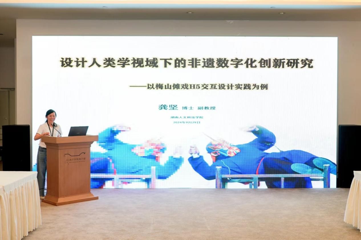 论坛上,龚坚博士发表了题为“设计人类学视域下的非遗数字化创新研究——以梅山傩戏H5交互设计实践为例”的报告。该报告不仅展示了数字技术如何被用于保护和创新性地展示传统文化,还深入探讨了数字化手段如何为非物质文化遗产的传承注入新的活力。龚坚博士通过梅山傩戏的H5交互设计实践案例,生动诠释了数字化技术在非遗保护与创新中的实际应用和巨大潜力,这一内容成为了论坛的一大亮点。