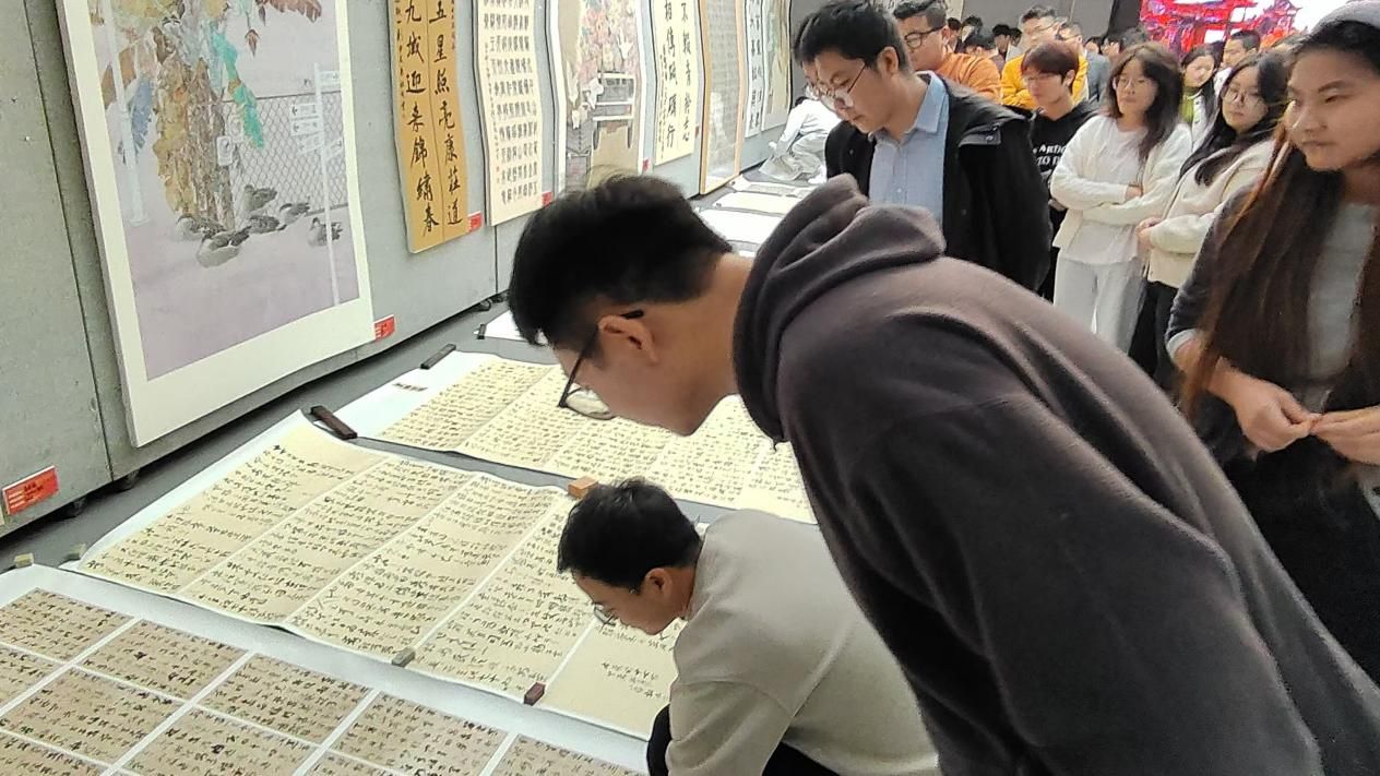上午10时10分,各班班长精心组织,带领同学们将结课作业整齐地摆放在展厅内。同学们纷纷驻足,互相交流学习心得,通过比较认识到自己的不足,并从中汲取新的灵感与启示,形成了浓厚的学术氛围。