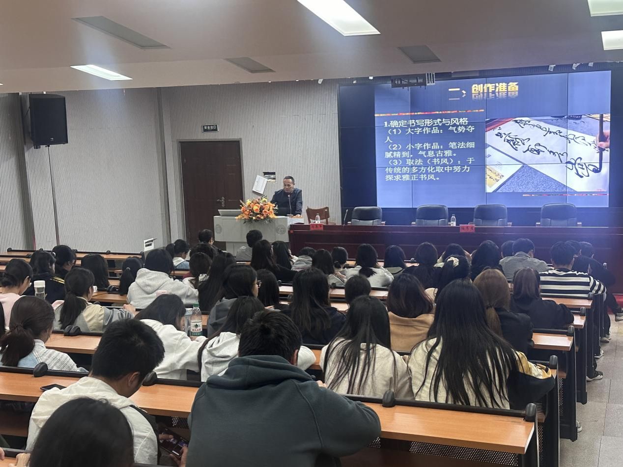 本次讲座既有学术深度,也具有很强的书法实践意义。让同学们深刻理解了书法“美”,收获了大量利于书法国展创作的技巧,同时对提升书法创作能力,引导同学们由临摹向创作转换有很强的指导意义。(图/文:陈建民 邓亚辉,一审:李国清,二审:童 玲,三审:陆序彦)
