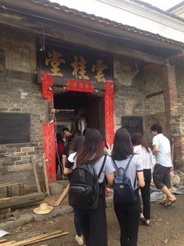 我系师生参观了杨市的晚清建筑云桂堂与师善堂,对建筑风格、文化内涵、造型艺术等进行了深入考察。杨市镇文化站就古建筑的保存、修复与文化艺术内涵的发掘与我系师生进行了合作交流,为学生提供了学习实践平台,进一步推进了我系校企合作工作。