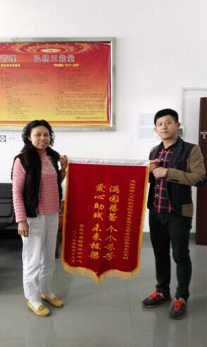 活动结束后,娄底市平男特殊培训中心佘平男主任向美术系党总支赠送了“满园蓓蕾、 个人芬芳, 爱心助残 、未来栋梁”的锦旗以示衷心感谢。(设计学学生党支部供稿)
