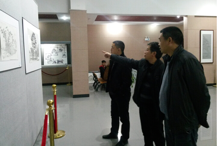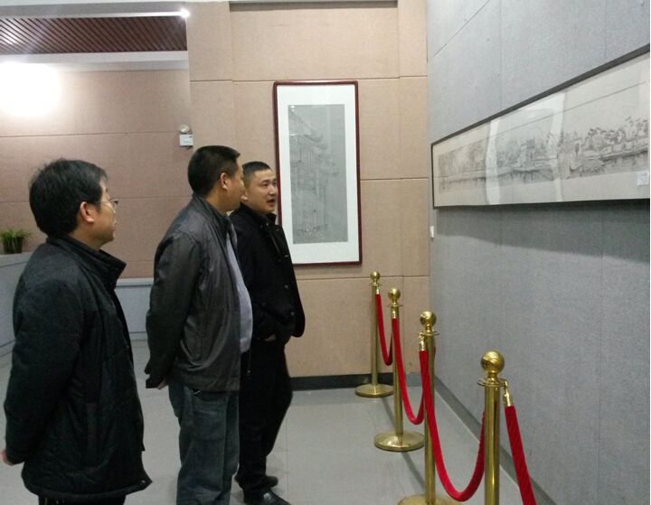 2014年11月27日晚,44118太阳成城集团教务处处长羊四清、副处长邓敏超在美术系系主任邹少灵、环境设计教研室主任严明喜的陪同下来到展厅,饶有兴致地参观了环境设计2014写生考察作品展览。