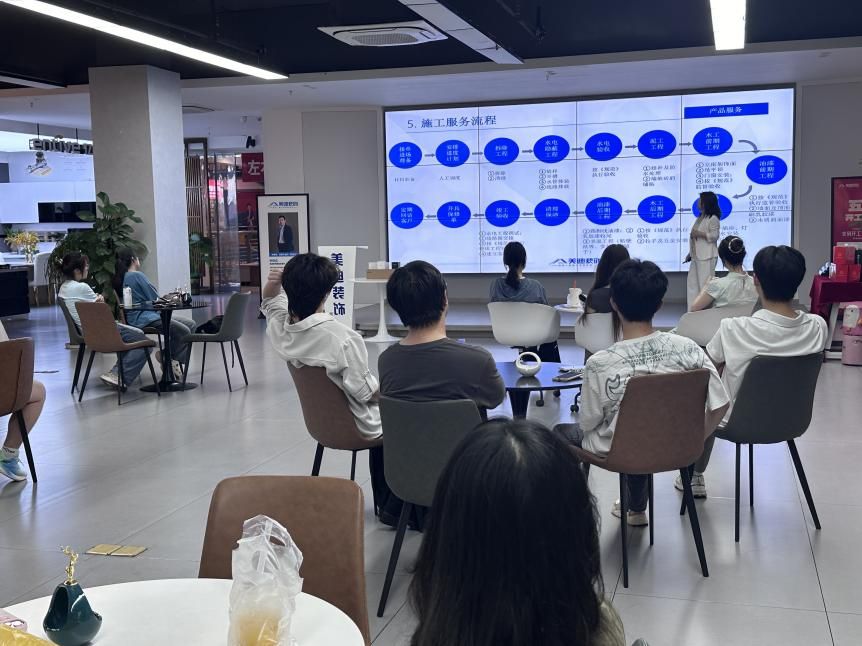 活动通过"展厅观摩-工艺解剖-趋势解析-工地实勘"四大模块,构建起完整的设计施工认知体系。美迪装饰设计总监贺甲云在数字化展厅开课时强调:"每个设计师都应该懂得材料会说话,工艺有灵魂。"通过企业发展纪录片,同学们见证了一家本土企业从传统家装到智能整装的时代跨越。在工艺解剖展区,水电隐蔽工程展示墙完整呈现了PPR热熔焊接工艺、强弱电分色布线规范等。科美装饰材料工艺区的沉浸式体验环节令人耳目一新。在1500㎡的实景工艺馆内,向学生们介绍从基层处理到面层施工的12道工序分解展示。"这种轻钢龙骨隔墙的减震垫安装,以往图纸上抽象的节点符号突然有了生命。"学生杨馥瑜在体验笔记中写道。材料对比区陈列着从传统石膏板到新型竹木纤维集成墙面的迭代样本,技术总监结合环保检测报告解读选材要点。科美软装总监通过场景演示,解析如何通过微水泥的肌理把控与弧形收口工艺,在极简设计中营造温暖质感。美迪工程部特别准备的"工艺避坑手册"引发热烈讨论,其中"卫生间防水分界线设置"与"地暖回填找平坡度"等20个常见问题图解,被同学们誉为"行走的工艺宝典"。 实地考察阶段,正在施工的南风苑小区项目成为最佳教学现场。学生穿行在管线林立的工地,智能放线机器人正在地面投射出精确的定位网格。"以往在课堂理解的'放线精度±3mm'概念,此刻在激光定位仪的红色光幕中变得真切可触。"带队教师林燕表示,这种零距离接触让教学实现了从平面图纸到立体空间的维度突破。