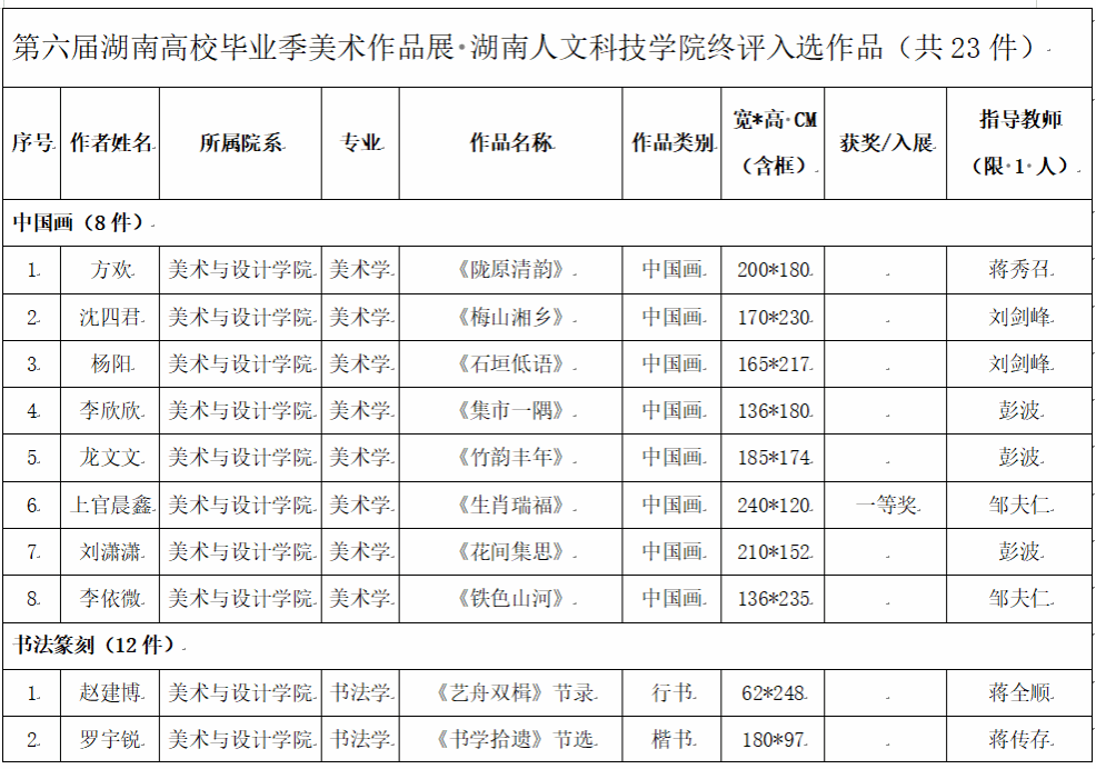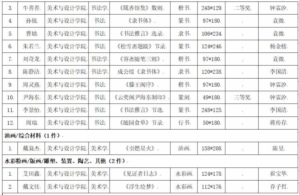 此次优异成绩的取得,既是学院长期坚持 “以美育人、以文化人” 教育理念的集中体现,也得益于专业教师团队的悉心指导与学生的潜心创作。未来,美术与设计学院将继续以人才培养为核心,深化教学改革,激发创新活力,在艺术教育与创作实践中培育更多兼具传统底蕴与时代视野的优秀人才,为湖南文化艺术事业发展贡献力量。(图/文 袁微 一审:李国清 二审:童 玲 三审:陆序彦)