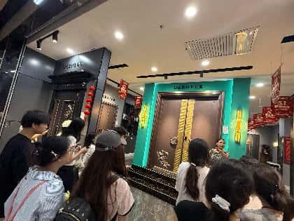 随后,学生们走进德诺特安全门展厅。企业工作人员围绕安全门的设计理念、生产工艺、安全性能等方面进行了全面讲解。从智能锁具的便捷与安全,到门体结构的坚固与防护,每一个细节都体现了德诺特对品质与安全的极致追求。学生们近距离体验了各类安全门产品,并在工作人员的指导下,亲自操作智能锁具,感受科技在家居安全领域的创新应用,进一步加深了对家居安全产品的理解。
