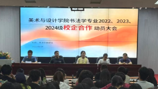 6月4日晚七点,美术与设计学院书法学专业校企合作教育周动员大会在逸美楼报告厅隆重举行。书法教研室主任李国清、教研室副教授彭建成、钟霖汐、袁微、周雪婷带队老师参会。本次动员大会聚焦书法学专业不同年级的成长需求,提出“认知—融合—实践”三阶段培养方案,实现人才培养与产业需求的精准对接。