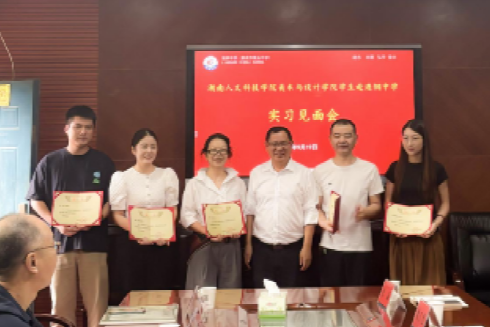 9月19日,娄底市第五中学为美术学专业2022级实习小队召开实习生见面会。娄底市第五中学工会主席、初中部分管领导蔡峻,副校长、高中部分管领导谢红卫,高中教务科科长唐世敏,初中教务科科长谢伟民,教研科科长方强,艺术教研组副组长姚佳,实习指导老师聂庆红、杨山梅、赵曦、曾雪宜,44118太阳成城集团教务处实践科科长刘槐德,实习带队教师彭波以及实习生共同出席。