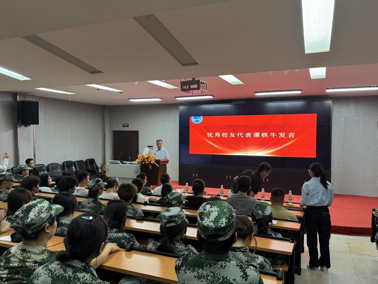 随后,优秀校友代表谭铁牛发言。谭铁牛结合大学期间的求学故事和自身丰富的人生阅历,讲述了他成立科美装饰公司时的探索与坚持。同时鼓励同学们在大学期间深耕专业、积极实践,做自己人生的建筑师。