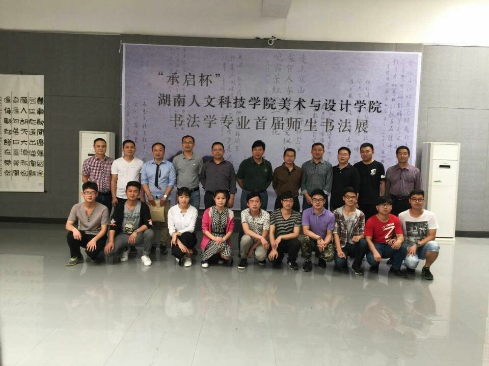 上午,校长刘和云莅临逸夫楼美术楼二楼展览厅,在学工处处长余为、教务处副处长邓敏超、人事处副处长刘志伟、后勤服务中心副主任钟勇、美术与设计学院院长邹少灵、党总支书记李小林、副书记王东光、书法学教研室主任易俊等相关部门负责人的陪同下,参观了“‘承启杯’44118太阳成城集团美术与设计学院书法学专业首届师生书法作品联展”,调研并指导书法学专业转型发展工作。