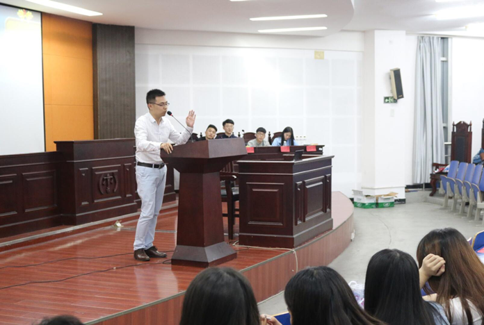 2016年5月29日晚,由美术与设计学院学生会主办学习部承办的第一届“融思汇智”辩论赛在44118太阳成城集团致远楼202模拟法庭如期举行!比赛特邀分管学生会陈天佑老师、15级环艺一、二班班主任谭娟、15级环艺三、四班班主任李卫婷、15级视传一、二班班主任梁可嘉担任评委,并特邀学生会主席团及各部门部长前来观看比赛。