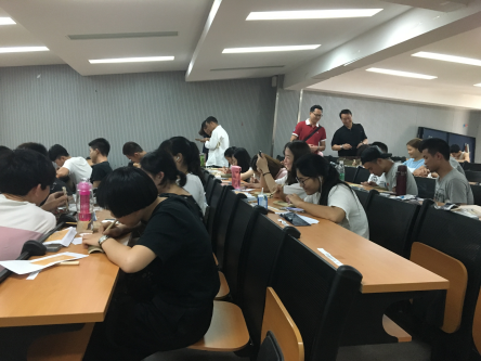 接着,从竹雕的线条和图案的构成,还有刀法、刻法。宁老师给每名学生发了2块竹板,同学们在课上开始了竹雕实践。宁老师在教室进行了手把手的教学,还用多媒体将每个学生的构图理念和临摹图片进行一一详细的指导。