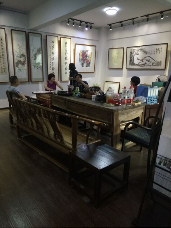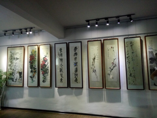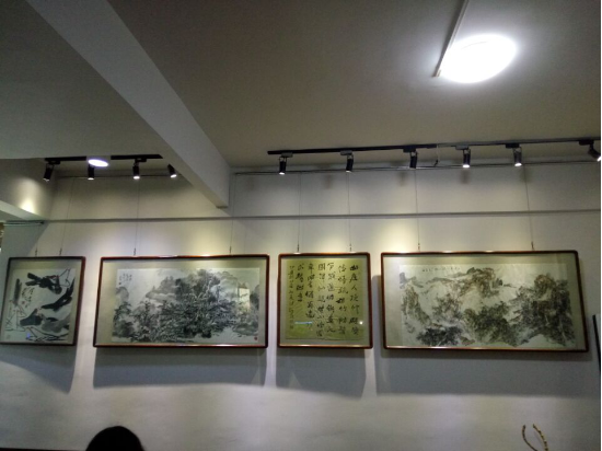 随后,老师和同学一起前往麓山美术馆。麓山美术馆地处湘中腹地,是娄底市规模较大,服务项目较完备,以经营书画艺术精品,发掘极具市场潜质的艺术家为主向的文化艺术机构。麓山美术馆具备收藏、研究、陈列、展览、教育、交流、宣传等多方服务功能。自开馆以来,颇受欢迎。经馆长介绍,麓山美术馆下辖有馆刊《麓山美术馆》,并有专家学者注入办刊方向与思想,它选稿考究,编排学术,印刷精良等深受社会各界赞赏。并拥有独立的门户网站,字画装裱中心,书画培训机构等。经营涉及各类艺术活动、书画赛事、艺术交流培训、名家字画经纪、陶艺古玩、配框装裱揭裱、文房四宝批发、艺术礼品、纪念品、艺术画册设计。馆长希望通过展出唤起更多人对传统绘画文化的重视,让更多人特别是年轻人加入到笔墨传承的队伍中来。