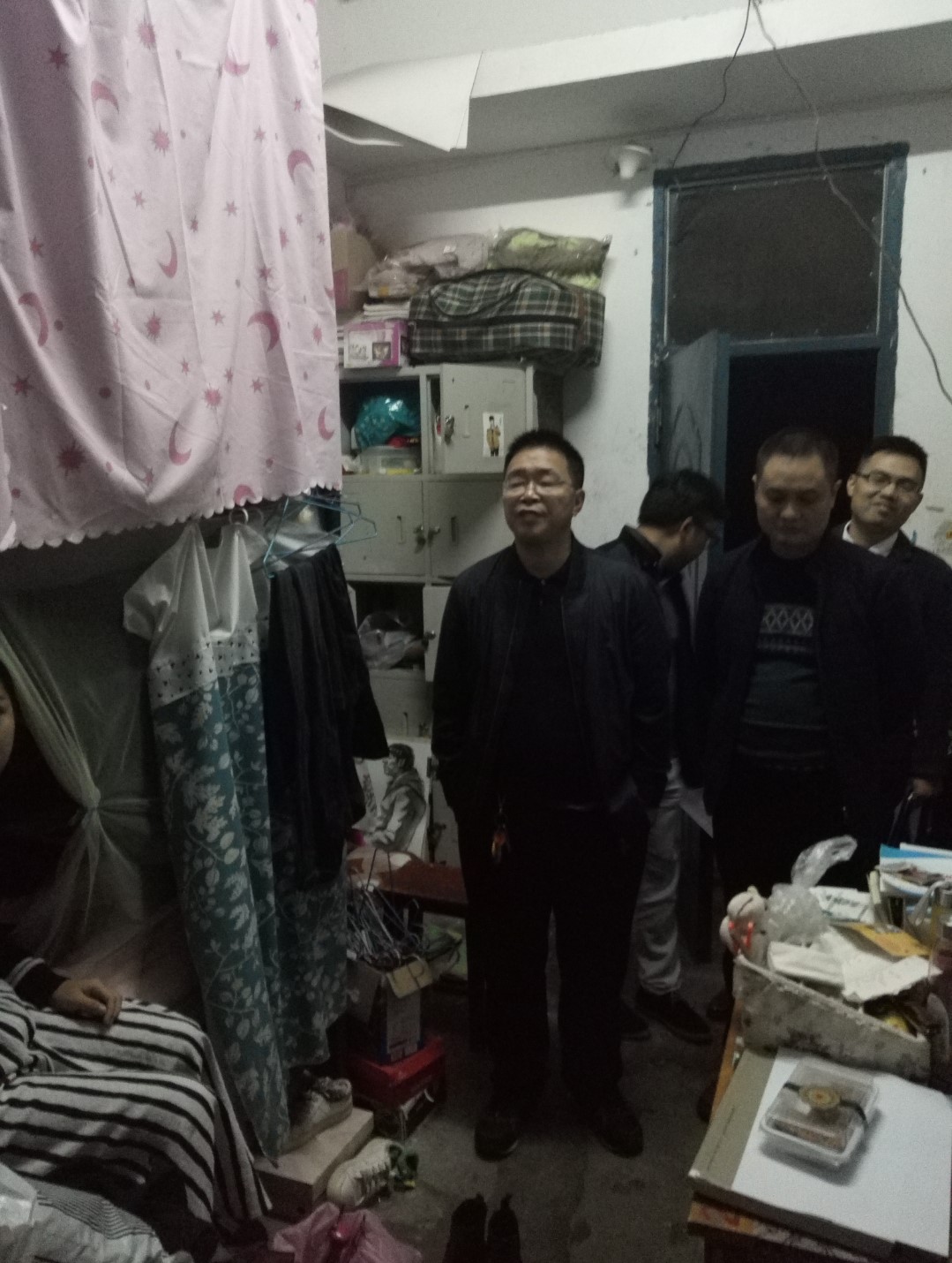 为积极落实太阳成官网争创“湖南省文明标兵单位”安排部署,推进“创文”工作顺利开展,10月31日晚上,太阳成官网党总支书记李小林,副书记王东光率各年级辅导员、班主任来到学生寝室,进行文明督查。
