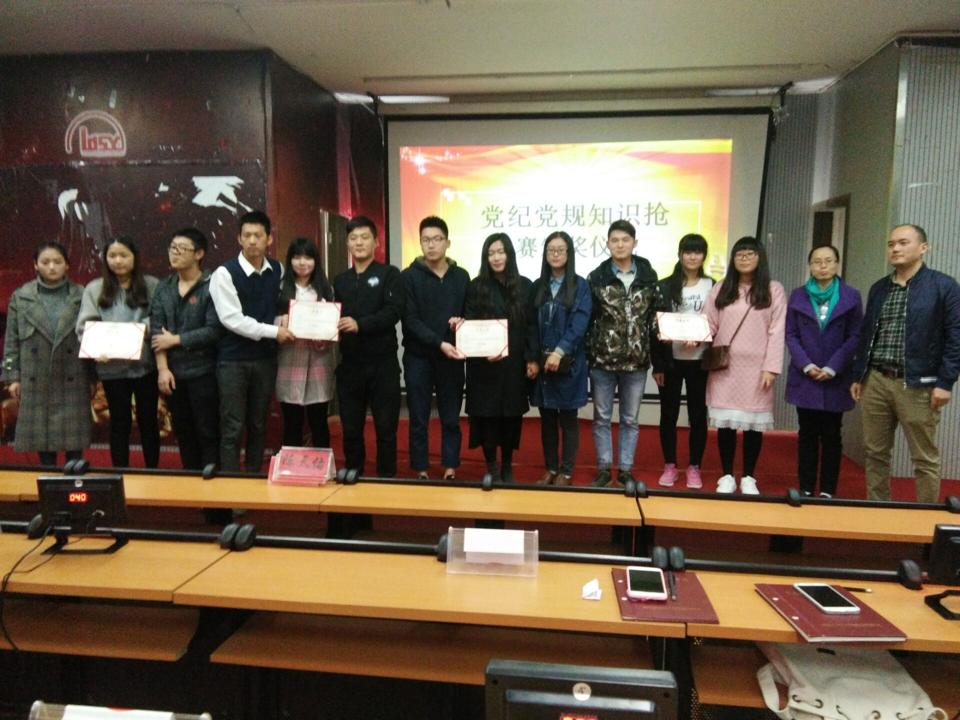 2016年11月1日,根据学校党委、纪委《关于开展党纪党规知识抢答赛的通知》要求,太阳成官网在一楼多媒体报告厅开展了党纪党规知识抢答赛初赛。此次比赛由党总支主办,团总支承办,党总支书记李小林、副书记王东光等院领导亲临现场观看了比赛。
