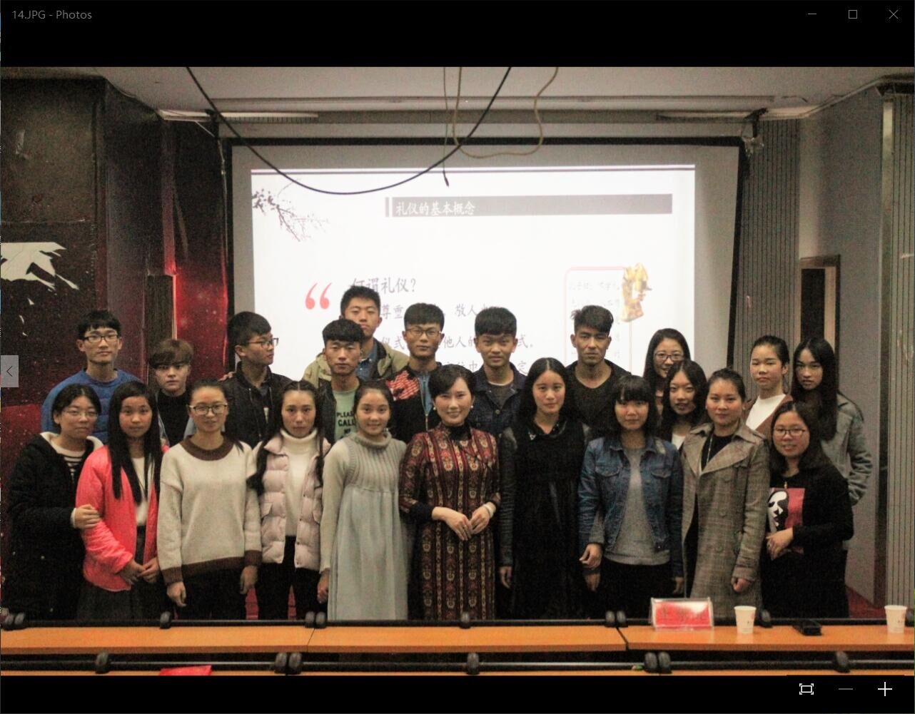 罗老师以自身在北京师范大学进修期间所了解的该校的一位受人尊敬的老师的成长成才经历为例,深入浅出的告知学生敬人敬己,从小事做起及讲究礼仪的重要性。罗老师以饱含激情的演绎方式介绍自己礼仪之路的经历,告诉学生日常生活中,注重个人小节,礼仪从小事做起,极大的提升了同学们的兴趣,不时赢得同学们的阵阵掌声。其间罗老师时不时与同学们展开现场互动以加深同学们对授课内容的理解,带动现场积极性。
