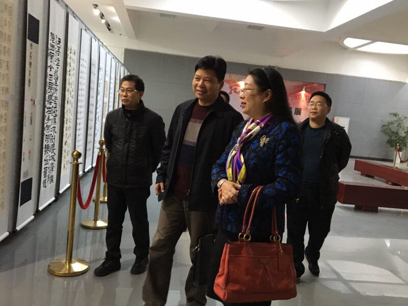 2016年12月7日下午,湖南女子学院党委书记罗婷来到美术与设计学院交流与指导,刘和云校长、太阳成官网党总支李小林书记、邹少灵院长等一起陪同参观了“纪念红军长征胜利80周年44118太阳成城集团师生书法美术作品展”,罗书记对作品展给予了高度评价。