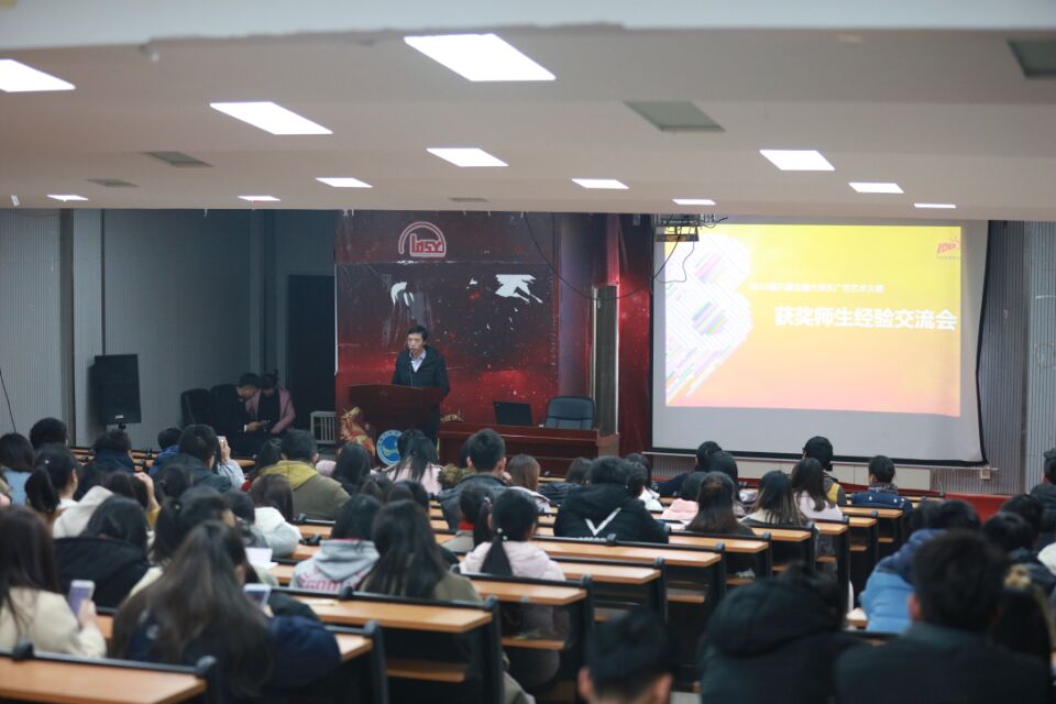 16日晚19:30,“第八届全国大学生广告艺术大赛获奖师生交流会”在美术与设计学院一楼多媒体报告厅召开。副院长陆序彦教授以及视觉传达专业师生参与了交流会。此次会议旨在激励、鼓励更多有想法、有创意的同学参与,在这个平台上有所收获,实现梦想,创造出彩人生。会议上,同学们欣赏了优秀的获奖作品并获益良多。