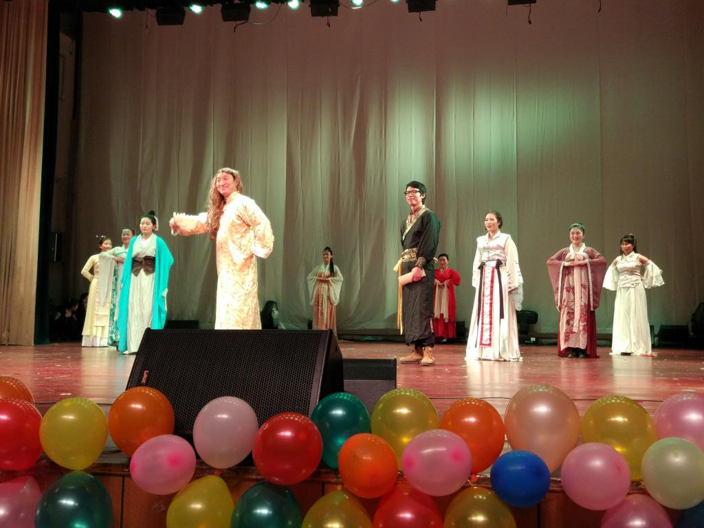 本次晚会节目种类丰富、形式多样,节目间隙穿插的抽奖互动环节,邹少灵院长亲自上台为同学们抽奖,更是惊喜连连。其中巧克力社团带来动感十足的街舞《sorry》,DC动漫社带来满满活力的《show》,学校武术队带阳刚气十足的武术表演,点燃了现场气氛,台下掌声雷动。学生会学习部带来的舞蹈串烧《Angel Devil》,给我们展示了一个不一样的青春活力的学习部;书法与舞蹈相结合的表演节目则是古香气味浓厚,展现了中华传统韵味;团总支素拓部带来的小品《小玄子与小桂子》和环艺三班带来的小品《你好,妈》更是嗨翻全场;婉约高亢的歌曲串烧《弹唱,see you again,滚滚红尘,小幸运》,陶醉了全场观众;老师们精心准备的《古装t台秀》和老师团学干部们的同台舞蹈更是给现场观众带来了意外的惊喜,将晚会推向了高潮。