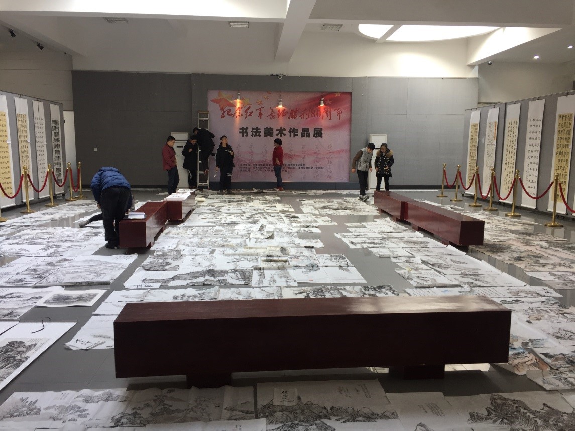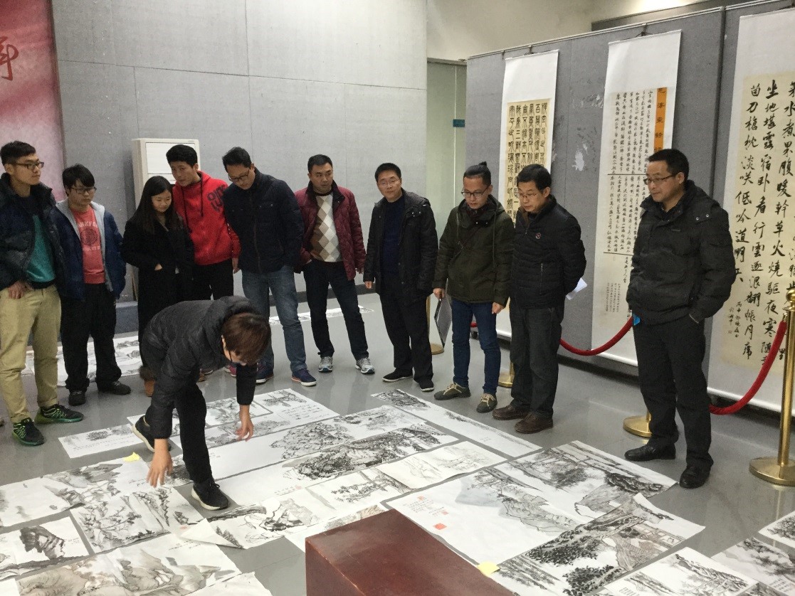 ,经过为期八周的教学,由欧阳波老师执教的书法学B2014级2班的山水画课程圆满结业,全班26名学生参与了本次山水画展,每个同学的作品由八张临摹稿,两张写生稿,五张创作稿组成。邹少林院长、李小林书记、书法学教研室易俊主任、彭建成副教授、刘风雪博士共同观赏和点评了本次山水画课程结业作品展。