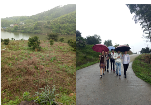 2017年4月9日上午10点,环境设计专业教师带学生们实地考察新化县新农村建设点生态农庄的规划设计和景观设计项目。