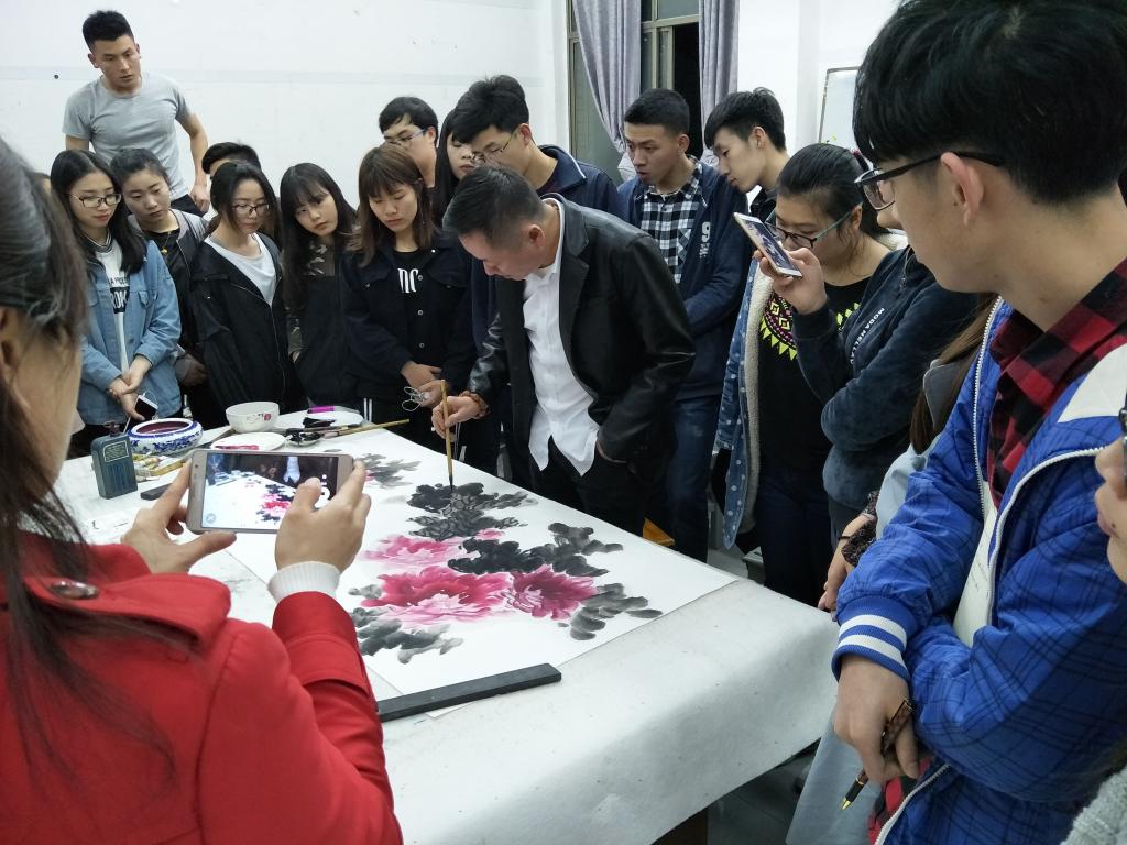 为提高学生专业绘画水平,美术学教研室于2017年4月5日、4月12日、4月19日晚7点到十点,三次邀请画家聂之鸿来太阳成官网讲学,并作示范教学,深受学生好评。