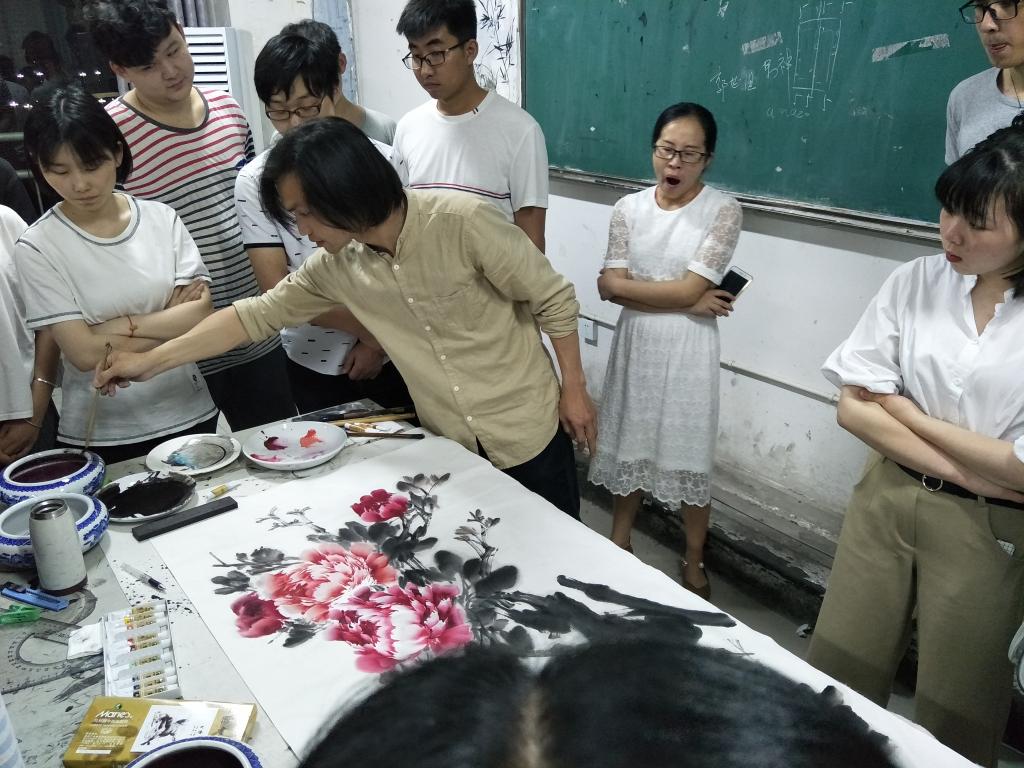 为进一步提高学生专业绘画水平,美术学教研室于2017年5月10日、5月17日、5月23日晚7点到10点,三次邀请画家黄飞雄来太阳成官网讲学并示范教学,深受学生喜爱。