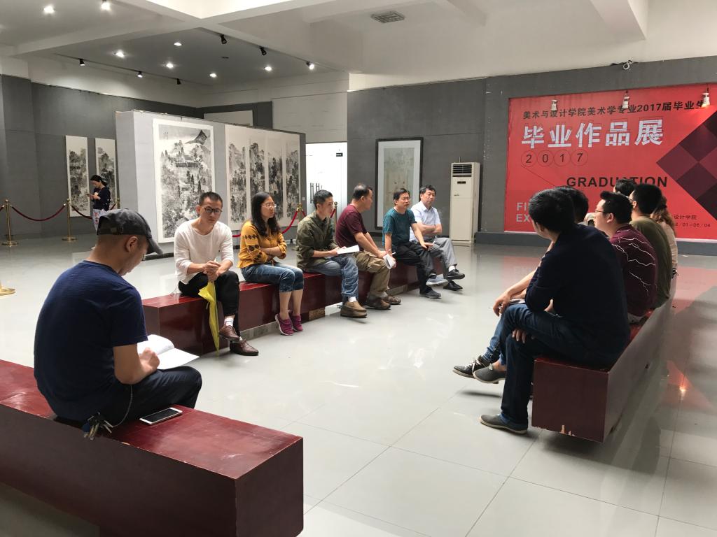 2017年6月1日上午十点,美术与设计学院美术学专业2017届毕业生作品展在逸夫楼展厅展出。此次毕业展是2017届美术学同学们几年学习的成果。美术与设计学院谢光绎书记、邹少灵院长等参观毕业作品展,并同美术学专业全体老师进行了座谈,听取了专业教师对实践教学和毕业作品等工作的汇报,给予好评。同时希望全体教师积极思考,进一步融合专业优势,打造自己的特色。