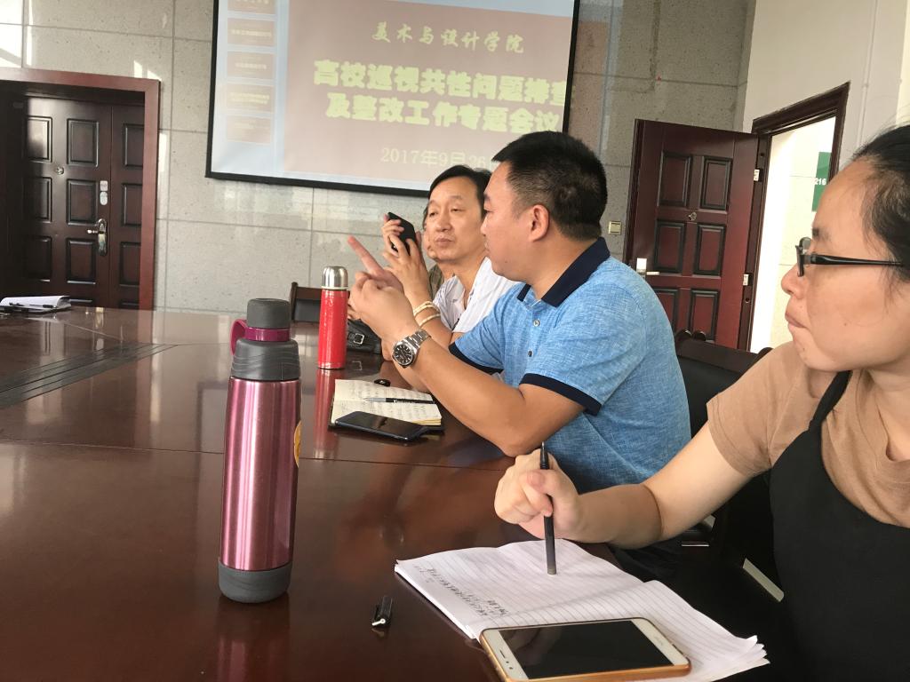 邹少灵院长等党政领导都先后带头进行问题排查,并做了表态性发言。一致表示一定认真对照高校巡视中的53个共性问题,履职担责,明确任务,列出自查清单,制订切实的共性问题整改措施,坚持边查边改,立行立改。(美术与设计学院彭建成供稿)