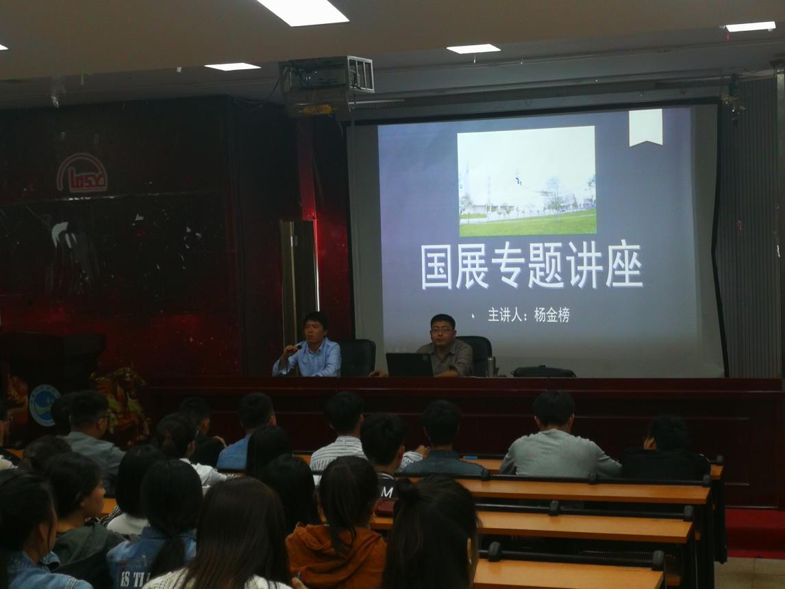 4月17日晚上,书法学教研室杨金榜老师在学院报告厅举办国展参展讲座,全体书法学专业学生聆听了本次讲座。