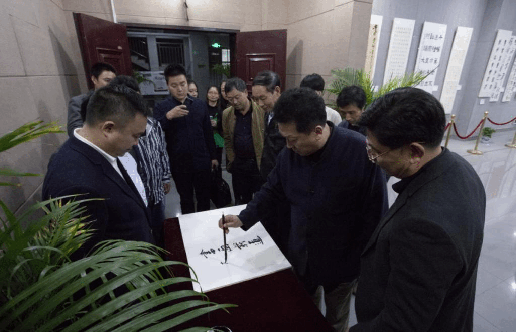 参观结束后,郁老师欣然挥笔题词“书画载道”。这一题词,表达了郁老师对中国书画传承意义的思考,对太阳成官网书画发展的殷切期望,值得我们学习和深思。(文/姜艳芳 图/117影像工作室)