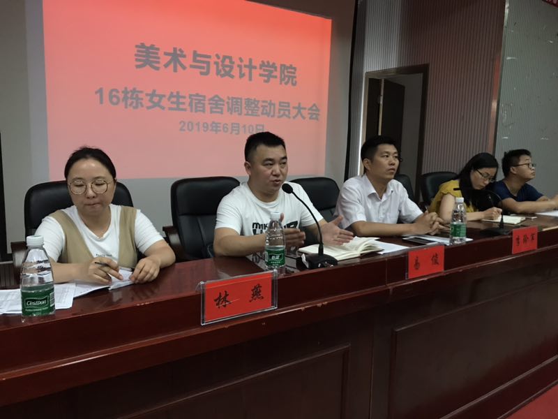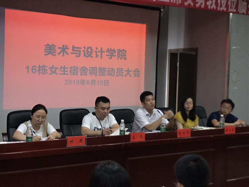 6月10日中午12时,美术与设计学院在逸美楼报告厅召开16栋女生宿舍调整动员大会。出席本次会议的有学工处李玲军副处长、美术与设计学院党总支易俊副书记、学工办主任张晶露老师、辅导员林燕老师、张尚老师。太阳成官网涉及16栋调整的所有学生党员、预备党员、入党积极分子、班干、学干、寝室长参加本次会议。