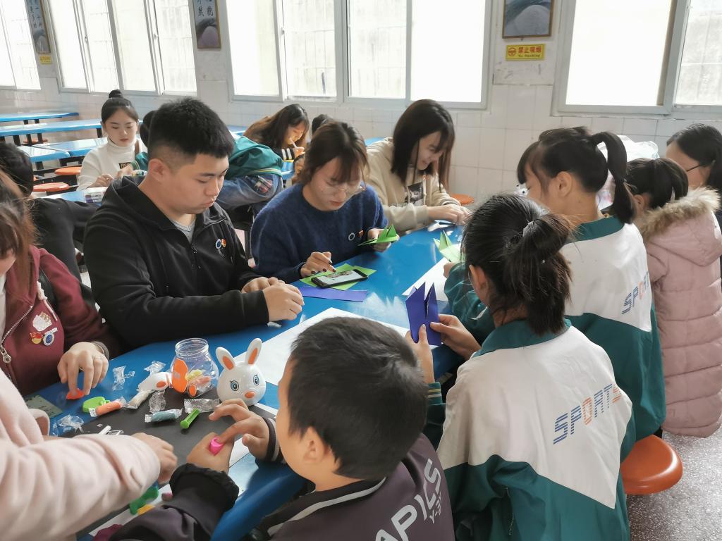 早上九点十分,美设院四个学生党支部所有党员集合,步行前往娄底市特殊教育学校参加此次活动。特殊教育学校的孩子是生活中的特殊群体,他们大多患有自闭症和智力障碍,关爱很难走进他们的内心。师生党员没有因此退缩,他们以饱满的热情和认真负责的态度想要走进特殊儿童的内心。孩子天真的笑脸和热情的邀请,让党支部成员很快融入进去。大家分为两大组,一组和儿童进行户外游戏交流,带领他们一起打篮球、打羽毛球和跳绳。另一组和儿童进行室内学习交流,党支部成员在教室教授孩子们画画、折纸、写字,与儿童互相交流内心世界。