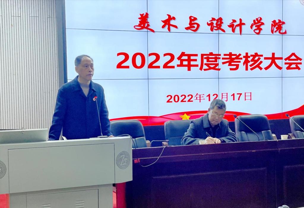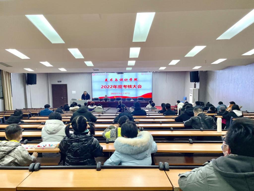 12月17日上午,美术与设计学院在逸美楼报告厅召开全院教职工2022年年度考核大会,校长刘铁铭携校党委组织部、党政办和教务处领导及工作人员共4人参加考核大会。会议由学院党总支书记谢光绎主持。
