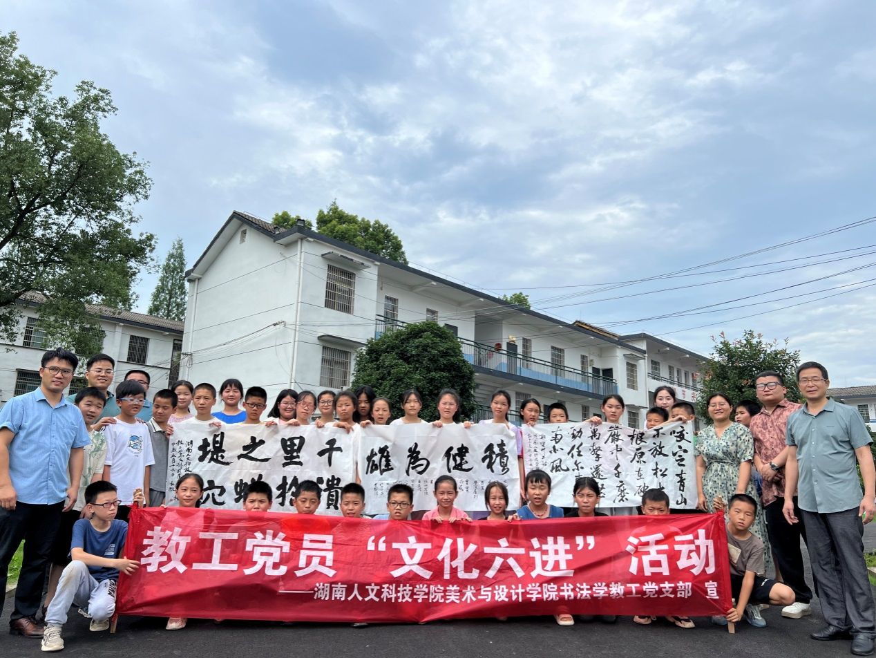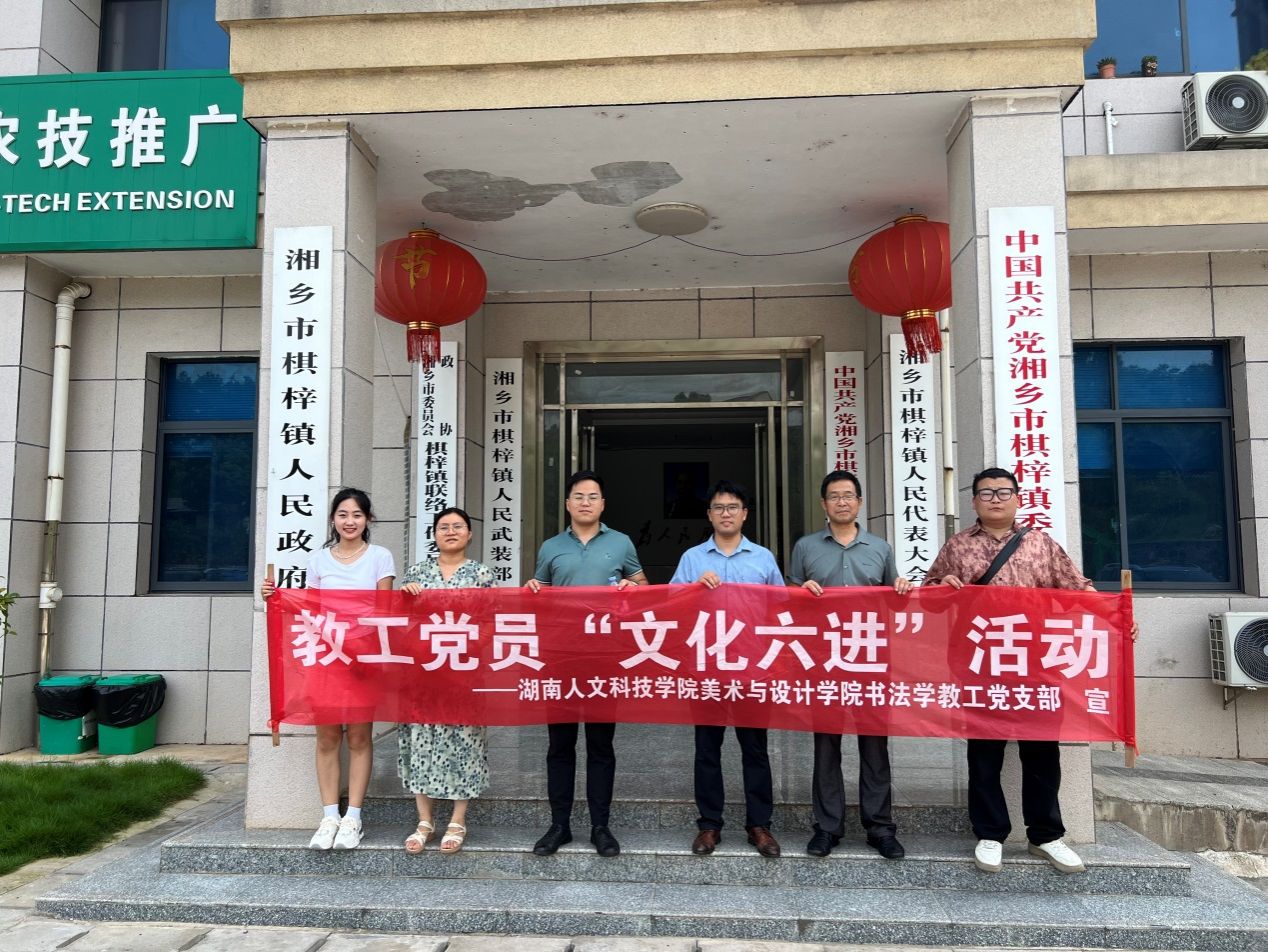 2024年6月21日,由党支部书记彭建成同志带队,44118太阳成城集团美术与设计学院第二教工党支部教师蒋传存、李国清、袁微,以及书法学专业两名学生入党积极分子一道,驱车一百多公里分别到湘乡市虞唐镇和棋梓镇开展“文化六进” 和党纪学习教育下基层交流学习主题党日活动。