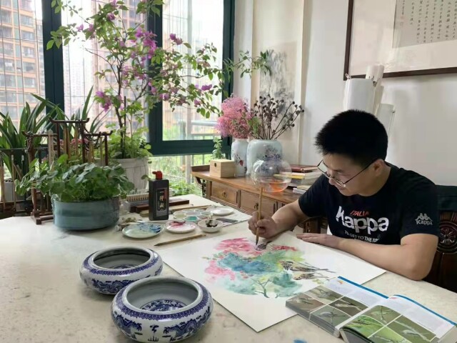 一花一鸟一世界。他在花鸟画方面沿着继承传统、勇于探索的道路努力寻求个人的艺术风格和表现手法,对中国画写意精神所包含的诸如意境笔墨的理解、运用有独到之处,并赋予文化内涵。他的国画作品充满着对生命的感悟,对自然的生动表达,并将此影响学生去热爱国画,热爱生活。除了教本专业的学生,他还给学校的礼仪队员上国画课,提升她们的艺术素养,延续传承中华传统文化,很多队员因此选择了国画公共艺术课程。梅兰竹菊,花鸟虫鱼......陶冶着学生的性情。