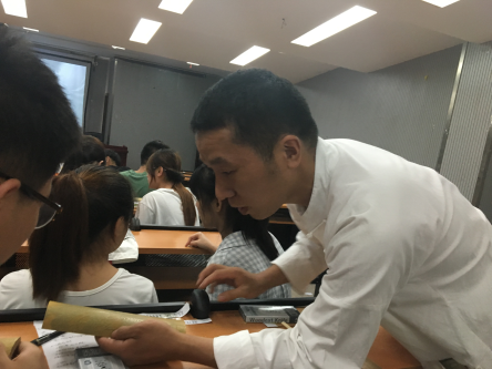 6月8日、12日、13日,在逸夫楼美术与设计学院一楼报告厅举行了为期3天的竹雕知识讲座和组织进行竹艺雕刻,主讲教师是承启书画苑宁亮成先生,参加本次实践教学的是太阳成官网书法学专业2013和2014级的全体学生。