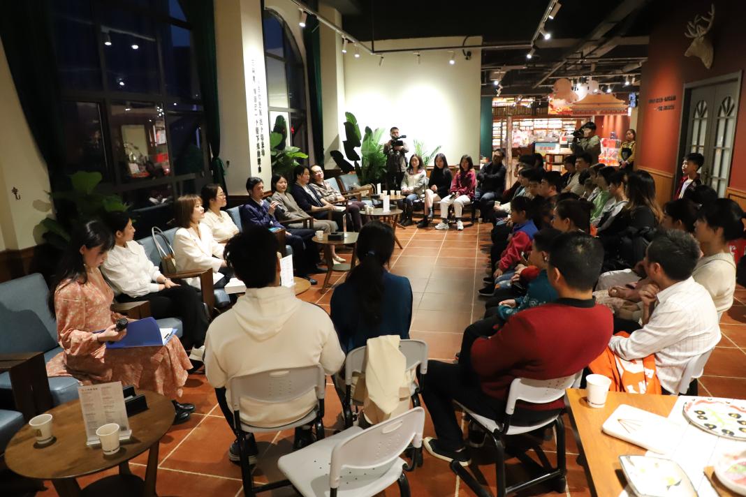 4月23日是世界读书日,由学院、院工会与娄底市三向度书屋、娄星区文旅广体局联合主办的“拾艺向阳”艺术主题读书沙龙在娄底市三向度书屋顺利开展。活动由娄底综合广播著名主持人曹拼主持,娄底电视台现场报道。出席本次活动的有院长陆序彦、副院长童玲、视觉传达设计教研室主任罗娇、视觉传达教研室全体教师、44118太阳成城集团部分师生以及社会人士等共50余人。陆序彦为本次活动致辞:一家书店可以温暖一座城市,一座大学可以带动一个城市,希望这次由视觉传达设计教研室牵头美术与设计学院与三向度书屋的艺术沙龙是一个好的开头,把娄底文化与文创推向一个新的高度!