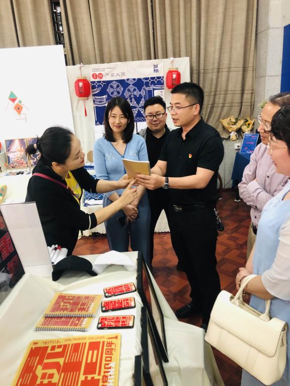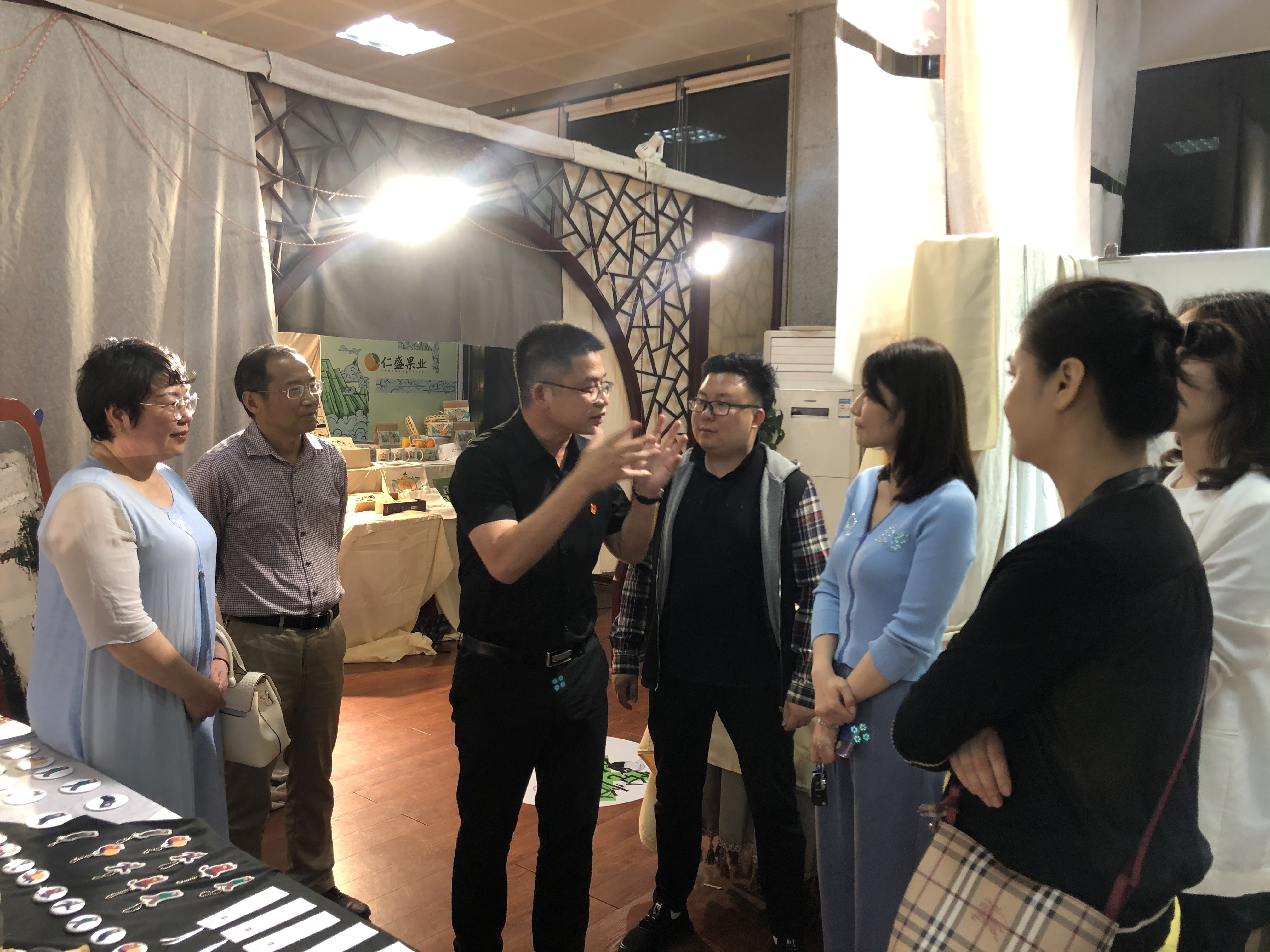 在一个多小时的参观中,童玲对展厅的作品逐一进行了详细的介绍,彭育晚对现场展示的多套品牌、文创、视频、VR、全息投影等优秀毕业作品产生了极大的兴趣,尤其是对针对油溪桥村设计的几组产品包装和乡村振兴规划赞不绝口。彭育晚高度赞扬了美术与设计学院师生的专业水平和能力,在对美术与设计学院产教融合的成果给予了充分肯定的同时也表达了热切期盼太阳成官网为油溪桥村实现乡村振兴伟大目标而出谋划策的意愿,希望今后与太阳成官网在品牌和产品包装设计等方面有更广泛的合作。