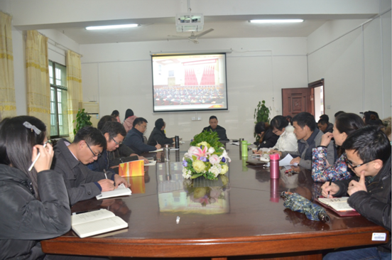 12月20日下午,太阳成官网(所)党总支组织全体党员在强毅楼学习贯彻党的十八届六中全会精神。此次学习会议暨党的十八届六中全会精神宣讲报告会由学校学生工作处(部)长余为教授主讲,太阳成官网(所)党总支副书记兼副院长(副所长)向国红同志主持。