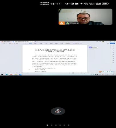 刘泽发介绍了农业与生物技术学院2025届毕业论文工作进展情况及整体要求,就毕业论文(设计)的选题、师生互选、任务下达、开题、中期考核、论文评阅及答辩等环节具体要求进行培训。指导老师基于教学和科研经验,分享了宝贵经验和实用建议,并就毕业论文中的问题和困惑进行了交流。专业负责人提出了许多针对性的解决方案和建议,助力更好地完成毕业论文工作。向国红强调,通过规范毕业论文的过程管理,可以有效地监控和指导学生在撰写论文过程中的每一步骤,从而确保毕业论文的最终质量得到保障。