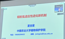 来自中国农科院的国家优青基金获得者(2020年)、中国青年科技奖获得者(2022年)、博士生导师郭兆刚研究员为论坛做了题为“小菜蛾对Bt杀虫蛋白产生抗性的分子机制”的主旨报告。报告从小菜蛾对Bt Cry1Ac毒素的抗性起源、传统靶标受体抗性等切入,系统讲解了过去20多年小菜蛾对Bt Cry1Ac抗性的研究进展,并结合自身10余年的研究经验以及近期的研究成果,揭示了小菜蛾不同中肠受体间的功能冗余性和分子互补作用模式,系统阐述了昆虫激素水平升高与串扰可以激活MAPK信号途径负调控多个中肠受体基因差异表达,从而导致了小菜蛾对Bt Cry1Ac的高抗性,为深入理解昆虫Bt抗性治理提供了重要的理论基础。之后,中国农业大学植物保护学院博士生导师夏吉星教授做了题为“烟粉虱适应性进化新机制”的主旨报告,报告阐述了烟粉虱通过水平基因转移的方式“劫持”了植物中酚苷丙二酰转移酶基因BtPMaT1用以代谢植物毒素,从而形成烟粉虱广泛寄主适应性的分子机制。为我们揭示了昆虫如何利用水平转移基因来克服宿主的防御机制,为探索昆虫适应性进化规律开辟了新的视角,也为新一代靶标基因导向的烟粉虱田间精准绿色防控技术研发提供全新思路。来自湖南大学的彭琼博士、湖南省农科院的李祖任博士、以及太阳成官网郭开发博士、郑慧新博士和王双辉博士等分别作了题为野燕麦中除草剂代谢抗性基因的挖掘、植物源羊脂酸的抑草靶标活性挖掘与利用、抗黄精根腐病生防菌的筛选和菌肥研制、烟粉虱田间危害现状研究、EGCG通过调控内质网应激降低镉致秀丽线虫的发育毒性的学术报告。参与师生对学术报告进行了提问交流。