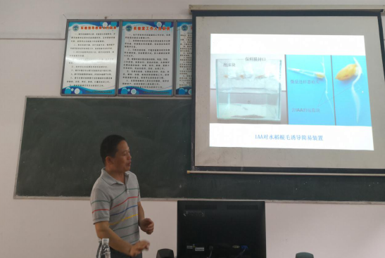 报告会上,罗文教授以绍兴淡水珍珠的研究背景与研究价值为导入,详细向同学们介绍珍珠钙代谢、酶测定以及提高淡水珍珠产量色泽的相关试验方法。莫亿伟博士与大家分享了他的最新课题研究:H2O2信号参与IAA诱导根毛的形成,发现根毛及侧根形成需要IAA极性运输等重要结果。报告内容深入浅出、层次分明、重点突出,为与会老师同学们做了一次生动、活泼的科研分享。两位教授语言幽默,讲座富有内涵,课件制作精美,让老师和同学在学习了知识的同时又享受了视觉的盛宴。